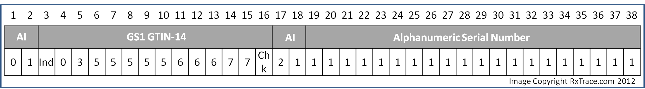 A GTIN element string is always 14 digits long when it is depicted using AI “01”. Remember that the FDA defined their serial number as being up to 20 alphanumeric characters. That means that it is a variable length value ranging from 1 to 20 characters. It is a happy coincidence that GS1 defines their serial number element string for AI “21” in exactly the same way! Well, in fact, the FDA made the decision to specifically align their definition with that of GS1’s existing AI “21” definition so that there wouldn’t be any conflict if people chose to use GS1 standards to implement the sNDC.