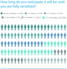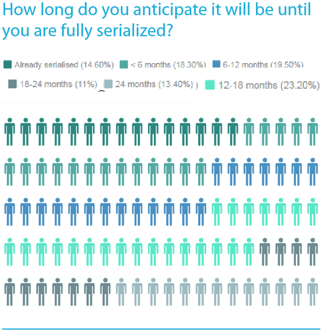 They asked, “How long do you anticipate it will be until you are fully serialized?” The question was asked of companies who market drugs all around the world, but mainly in the U.S. and E.U., so it is surprising that one quarter of the respondents said either “18-24 months”, or “24 months”. It means those companies are admitting that they are going to miss the deadlines in both the U.S. and the E.U.